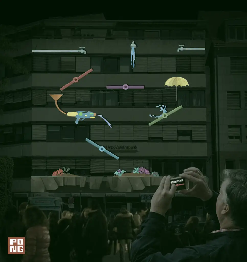 Seit Ende November ist die App „Our City“ von Alexander Liebrich und Marco Zampella freigeschaltet. Mit der App können Nutzer*innen bis zum 19. Dezember nach Einbruch der Dunkelheit die Beleuchtung der Turmbergruine individuell gestalten und sogar Emojis auf die Fassade projizieren. Ab dem 29. Januar 2021 ist auf der Fassade der HypoVereinsbank am Stephanplatz die Installation „Saving Water“ der Kreativagentur PONG.Li Studios zu sehen. Bei dem interaktiven Computerspiel können Bürger*innen eine Wasserleitung auf der markanten Fassade konstruieren. Ein interaktives Spiel hat die Künstlergruppe bereits für die Schlosslichtspiele entwickelt. Bei „Capture the Pyramide“ konnten die Besucher*innen ihre Spielfiguren über die illuminierte Schlossfassade manövrieren.
